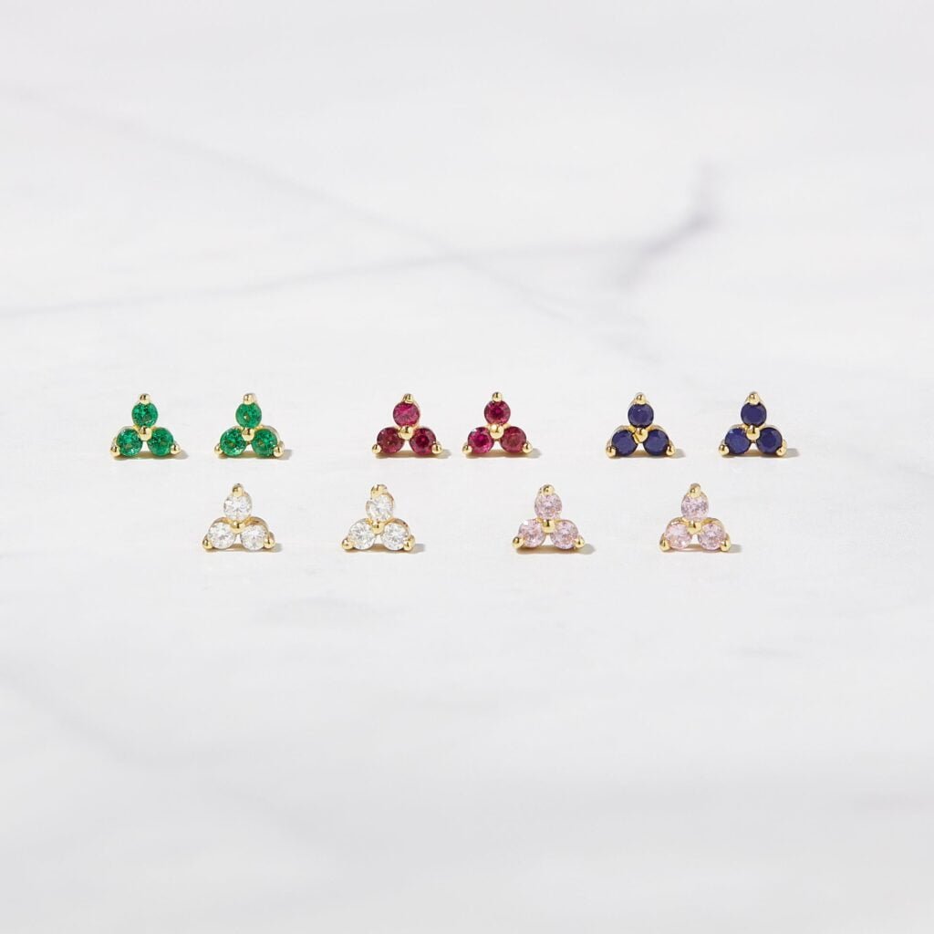 Swarish Jewels Tiny CZ 3 Stone Studs