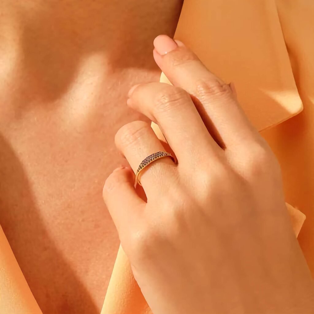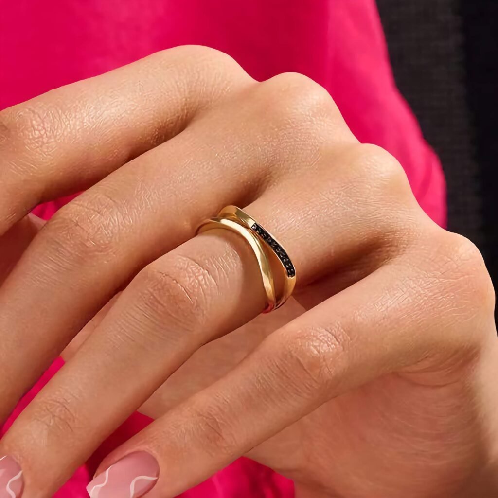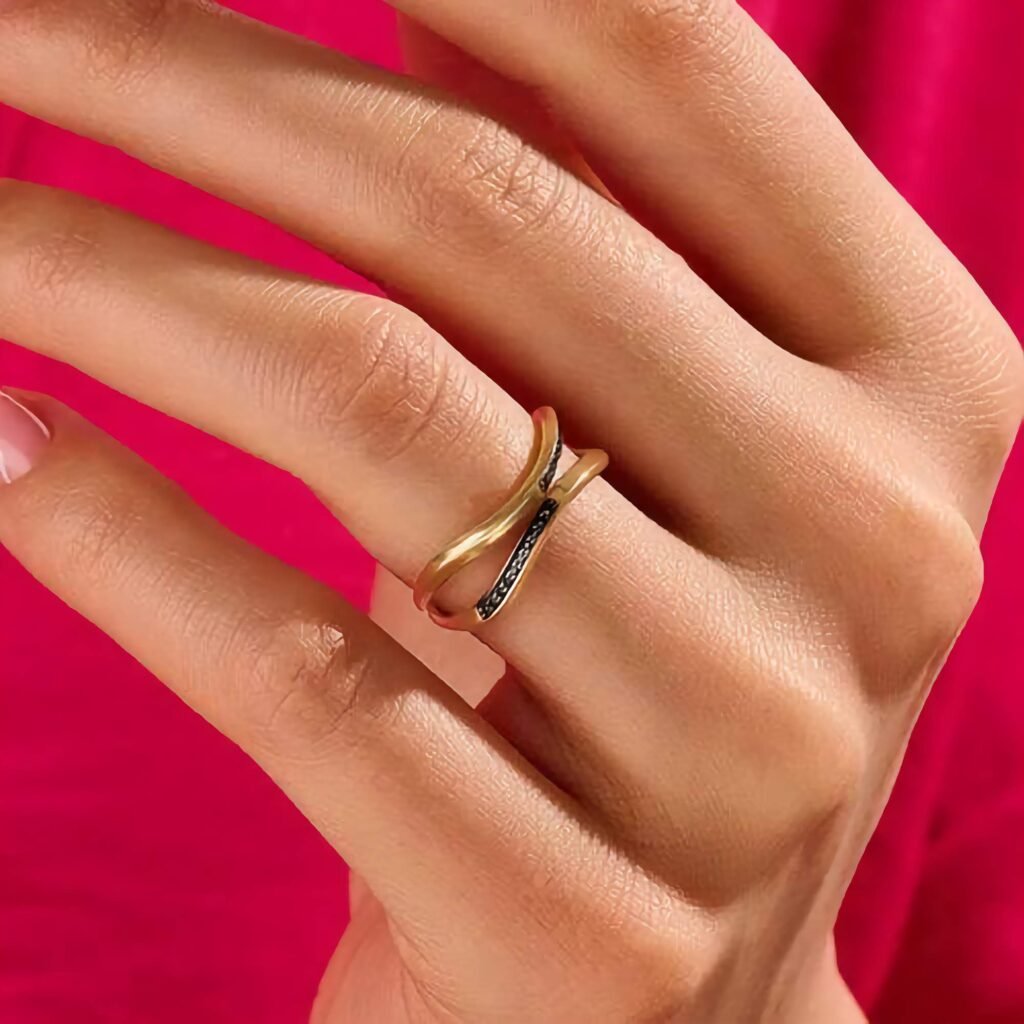 Swarish Jewels Tiny Cross Distance Silver Ring | Stacking Ring | Christian Ring Women | Minimalist Everyday Ring in Yellow Rose White Gold