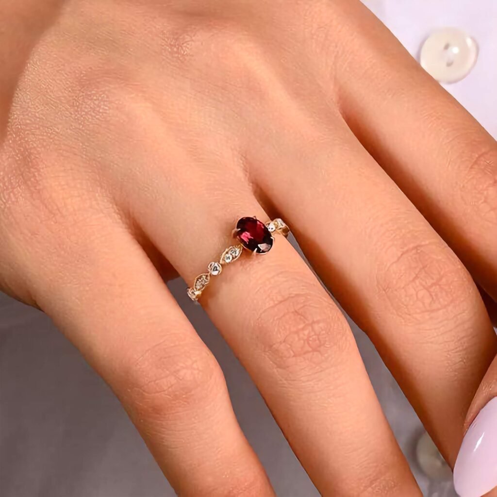 Swarish Jewels Pink Rhodolite Oval Solitaire Silver Ring | Raspberry Garnet Engagement Ring Women | Accented Anniversary Ring | Dainty Proposal Ring