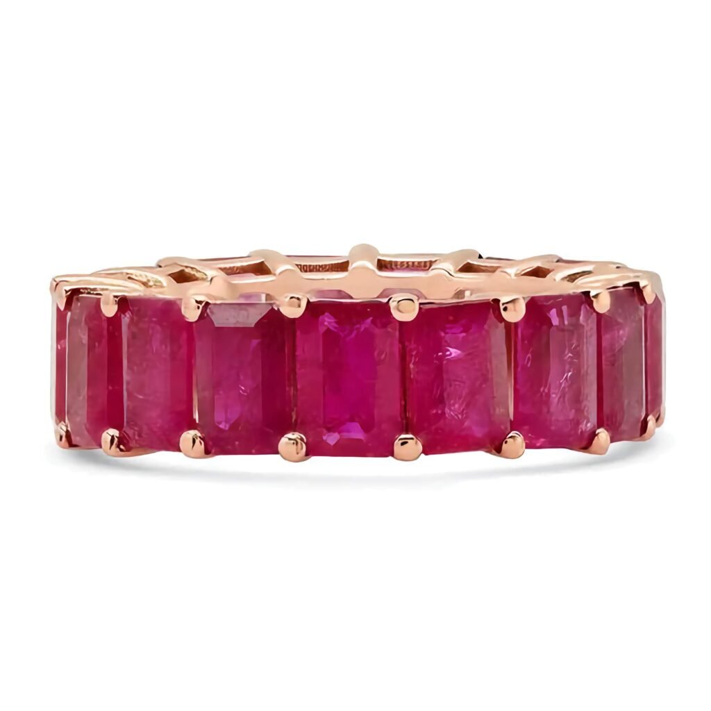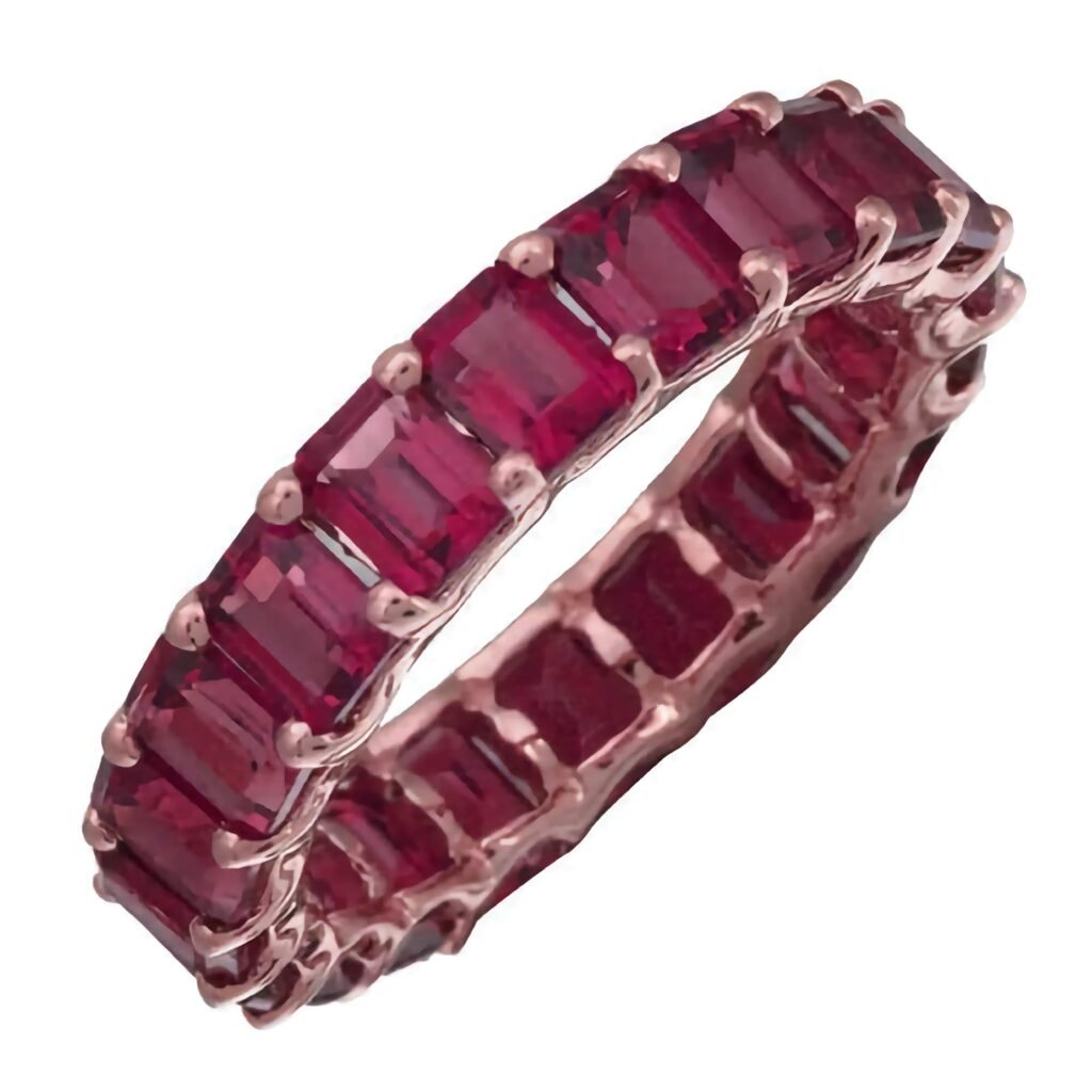 Swarish Jewels Emerald Cut Ruby Eternity Silver Ring