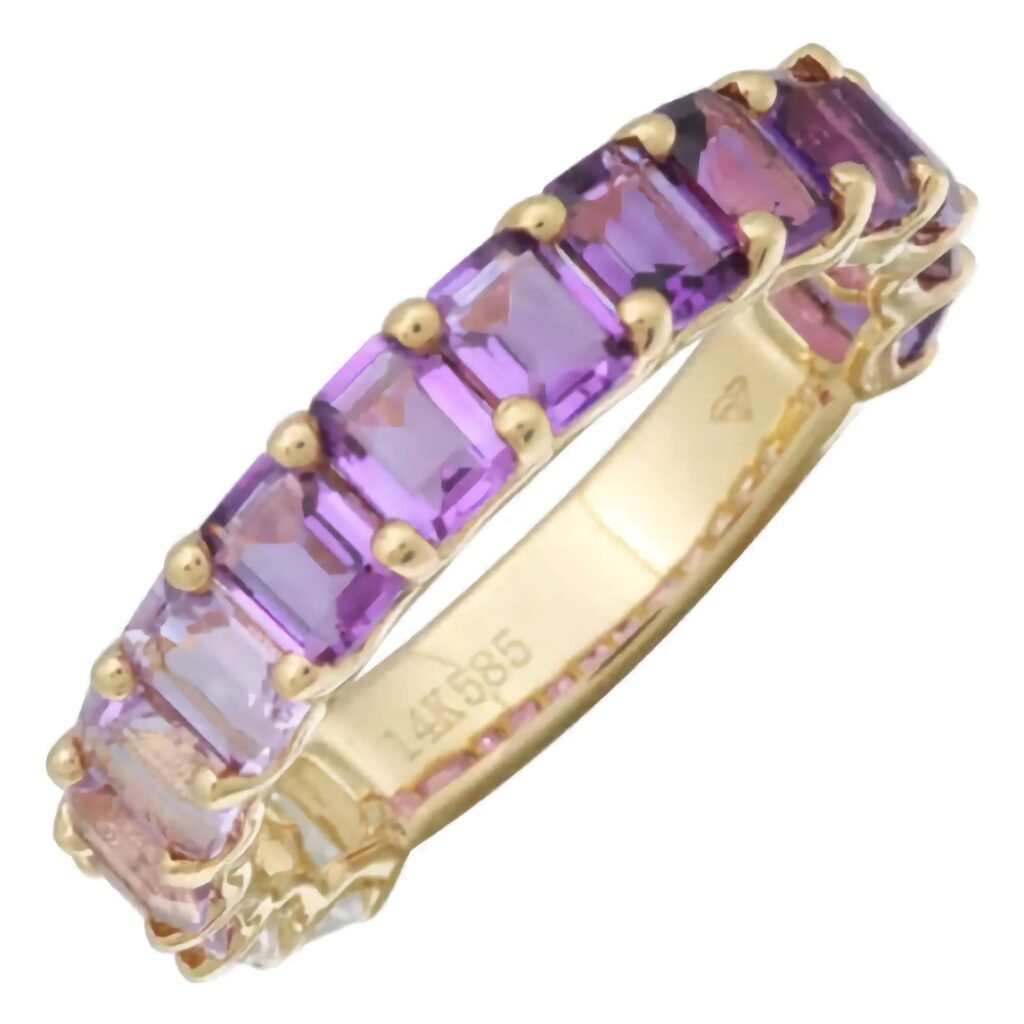 Swarish Jewels Gemstone Purple Ombre Eternity Silver Ring 3/4 Petite Emerald Cut