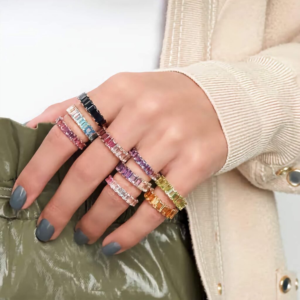 Swarish Jewels Gemstone Pink Eternity Silver Ring Petite Emerald Cut