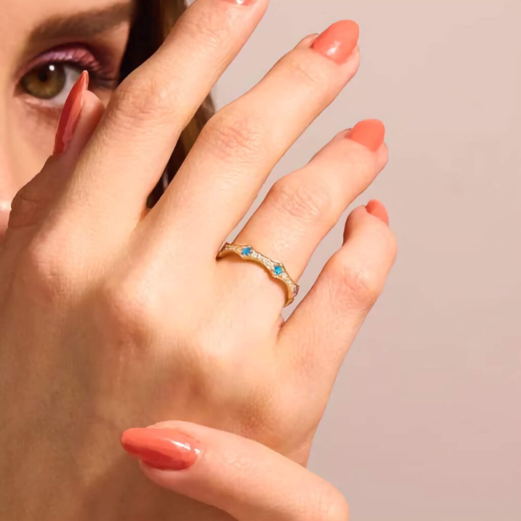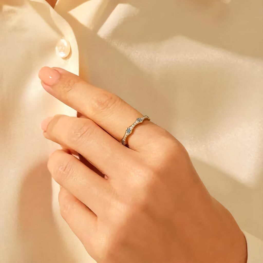 Swarish Jewels Aquamarine Crown Silver Ring | Vintage Wedding Band Women | Pave Aquamarine Half Eternity Ring | Blue Gemstone Stacking Ring