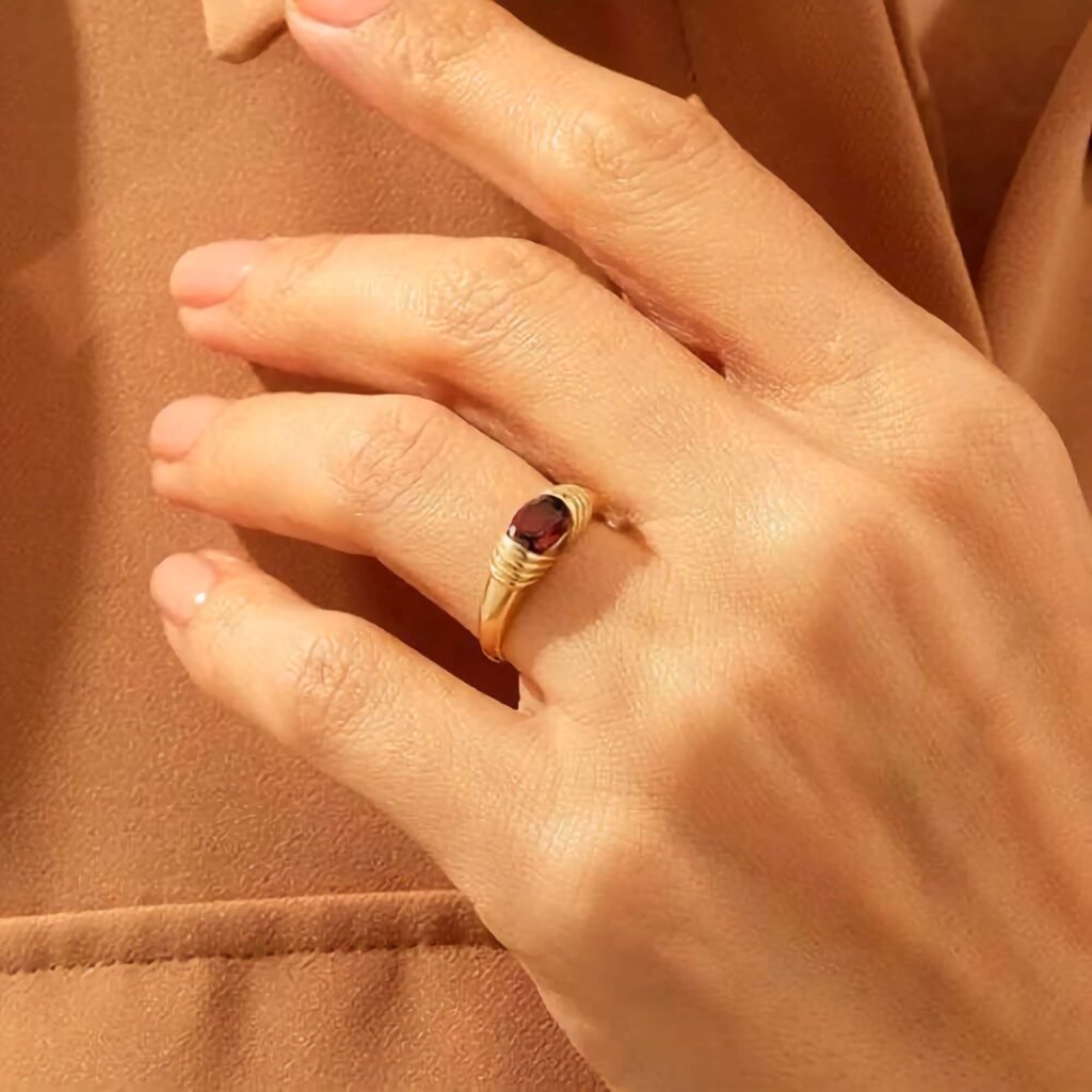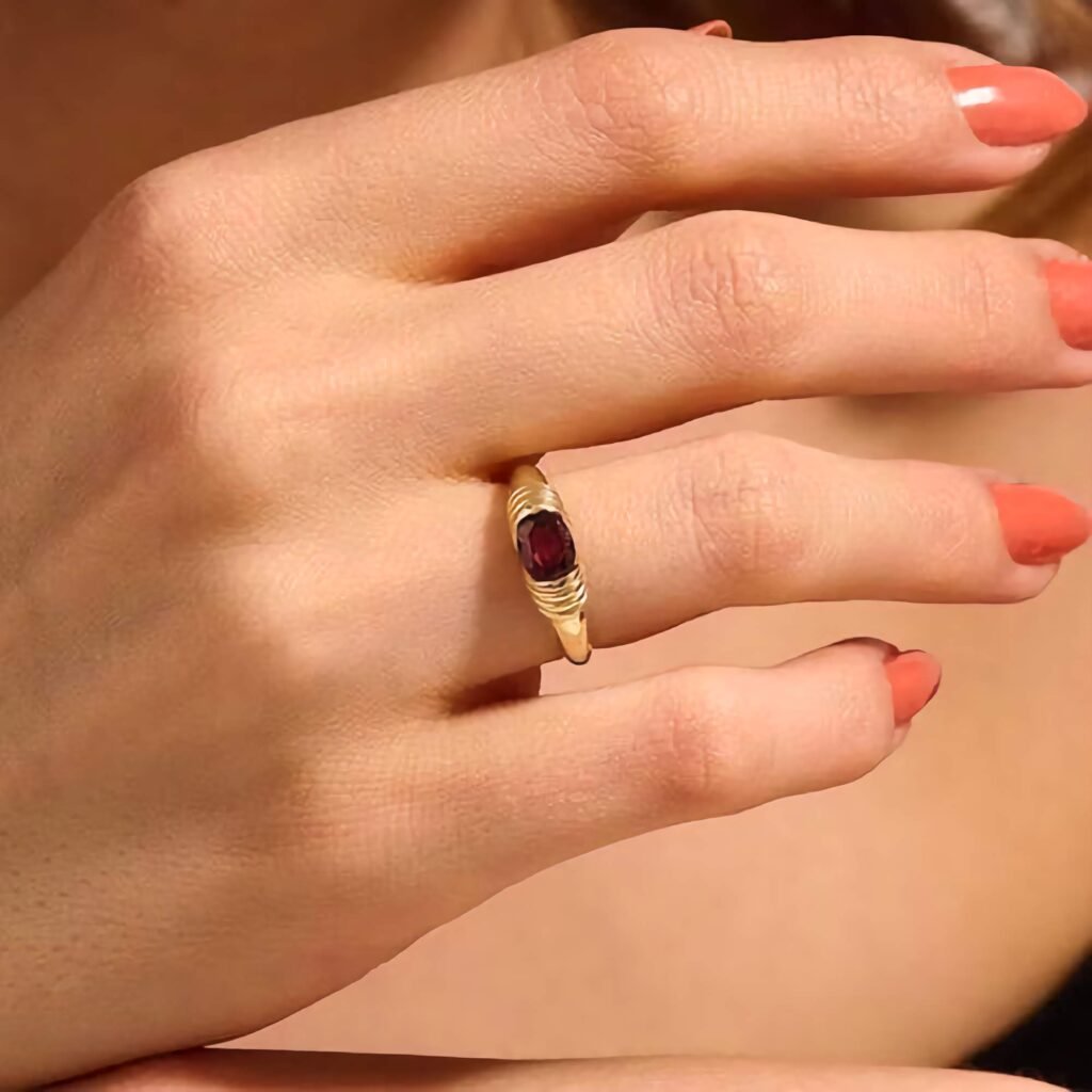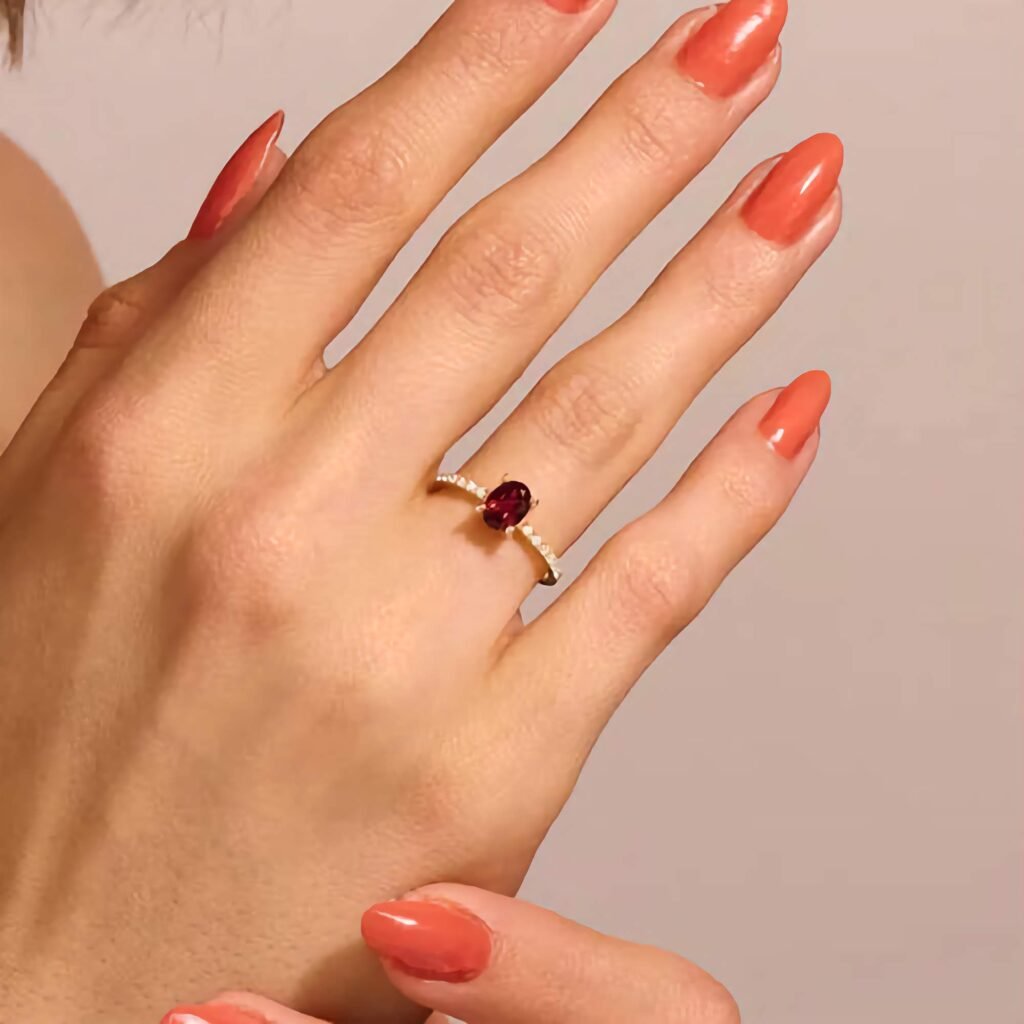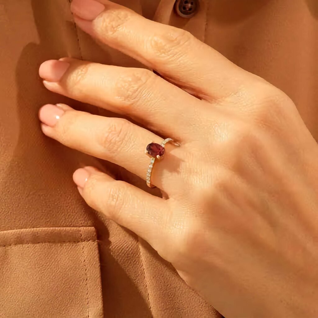 Swarish Jewels Garnet Oval Solitaire Ring | Genuine Stone Solo Ring | Red Gemstone Engagement Ring Women | Accented Mothers Anniversary Ring