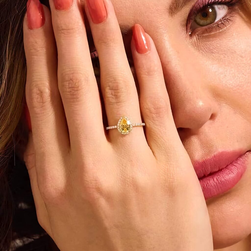 Swarish Jewels Pear Citrine Silver Ring | Yellow Citrine Solitaire Ring | Teardrop Gemstone Anniversary Ring | Dainty Prong Set Mothers Ring