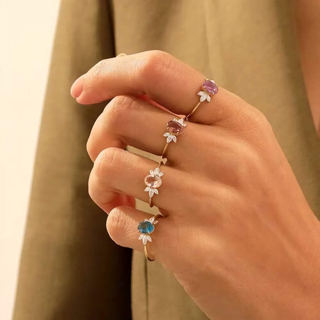 Swarish Jewels Pink Tourmaline Flower Silver Ring | Womens Oval Engagement Ring | October Birthstone Anniversary Ring | Dainty Pink Gemstone Ring