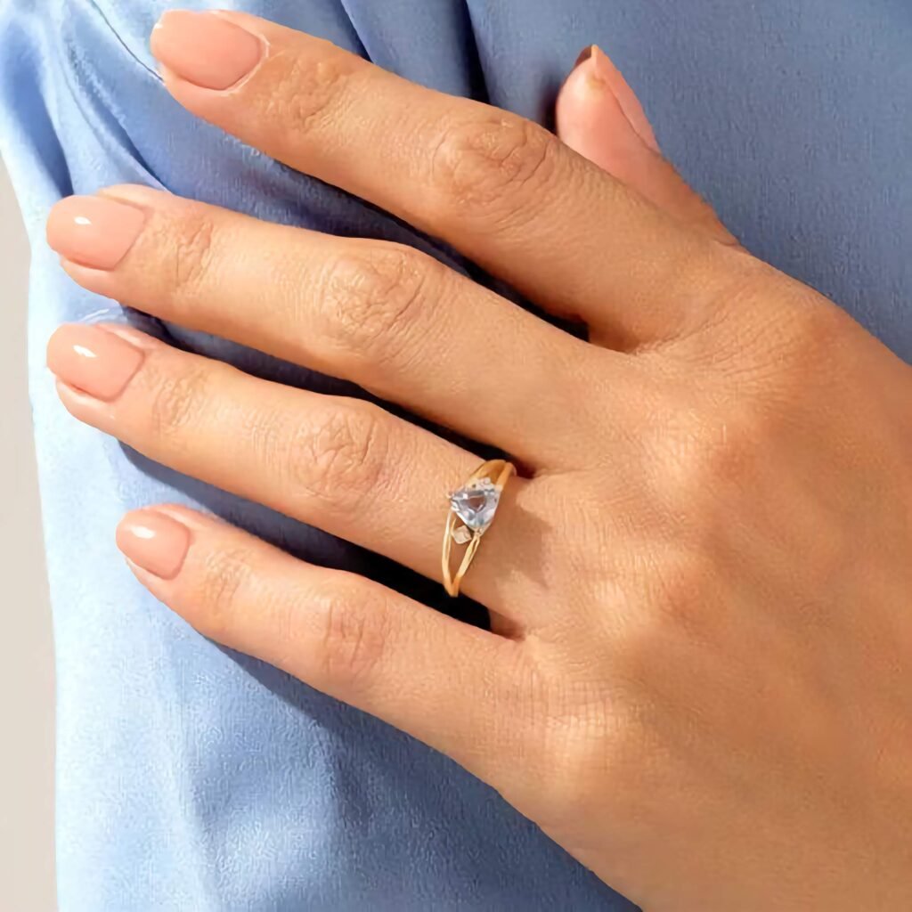 Swarish Jewels Triangle Aquamarine Silver Ring | Unique Engagement Ring | Split Shank Solitaire Ring Women | Light Blue Trillion Cut Ring