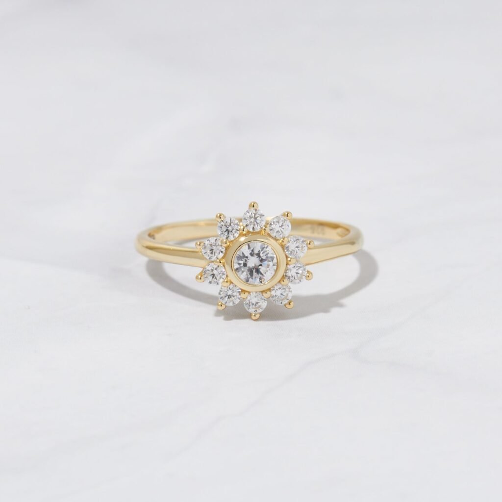 Swarish Jewels Gold & Diamond Marquise Evil Eye Coin Signet Silver Ring
