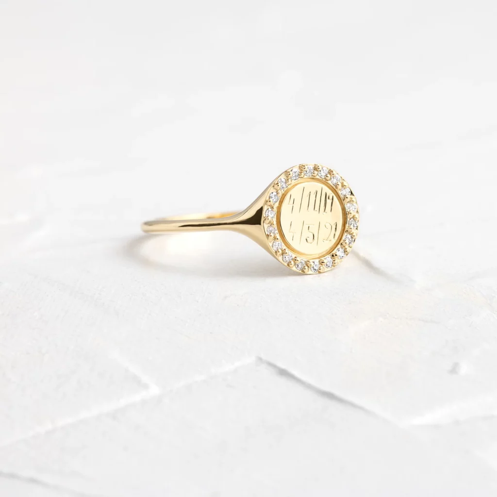 Swarish Jewels Gold & Diamond Marquise Evil Eye Coin Signet Silver Ring
