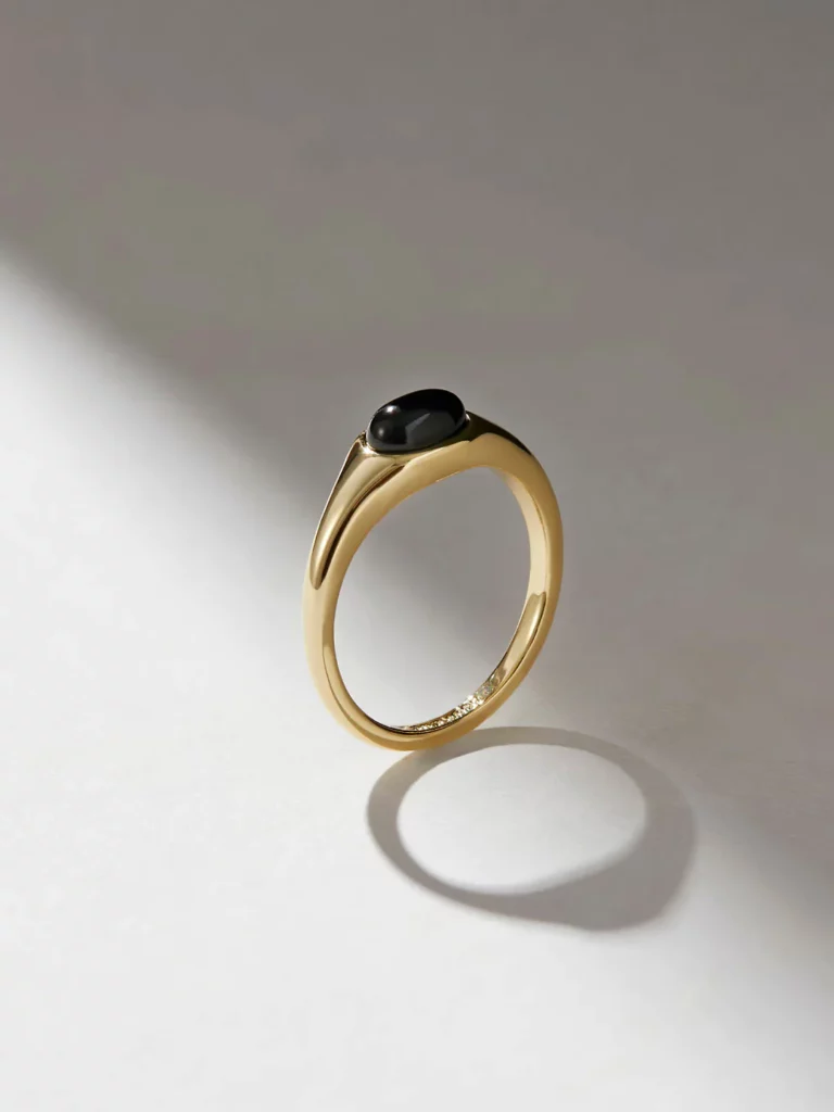Swarish Jewels Gold & Diamond Marquise Evil Eye Coin Signet Silver Ring