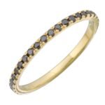 To ensure longevity and durability, the band is delicately dipped in 14k gold, adding a luxurious finish that complements the richness of the black diamonds. The warm glow of the gold enhances the allure of the band, making it a truly exquisite addition to your jewelry collection.