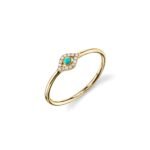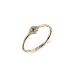 Gold & diamond small bezel evil eye silver ring