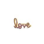 The Pave Amethyst Large Love Silver Ring is a bold and enchanting expression of affection and style. Crafted from sterling silver, this ring showcases a sizable amethyst gemstone accented with pave-set diamonds, forming the word “Love” in an elegant script. Radiating with vibrant purple hues and sparkling brilliance, the amethyst exudes charm and mystique, while the delicate diamonds add a touch of glamour. With its eye-catching design and meaningful symbolism, this ring is a stunning statement piece that celebrates love and individuality.