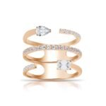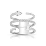 Swarish Jewels Multishape Triple Row Diamond-on-Diamond Statement Silver Ring: This stunning ring boasts three rows of diamonds set in various shapes, creating a captivating and luxurious statement piece that exudes elegance and sophistication.