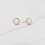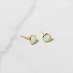 These opal studs are super cute and dainty! They are perfect for first piercings and stack nicely with other earrings!