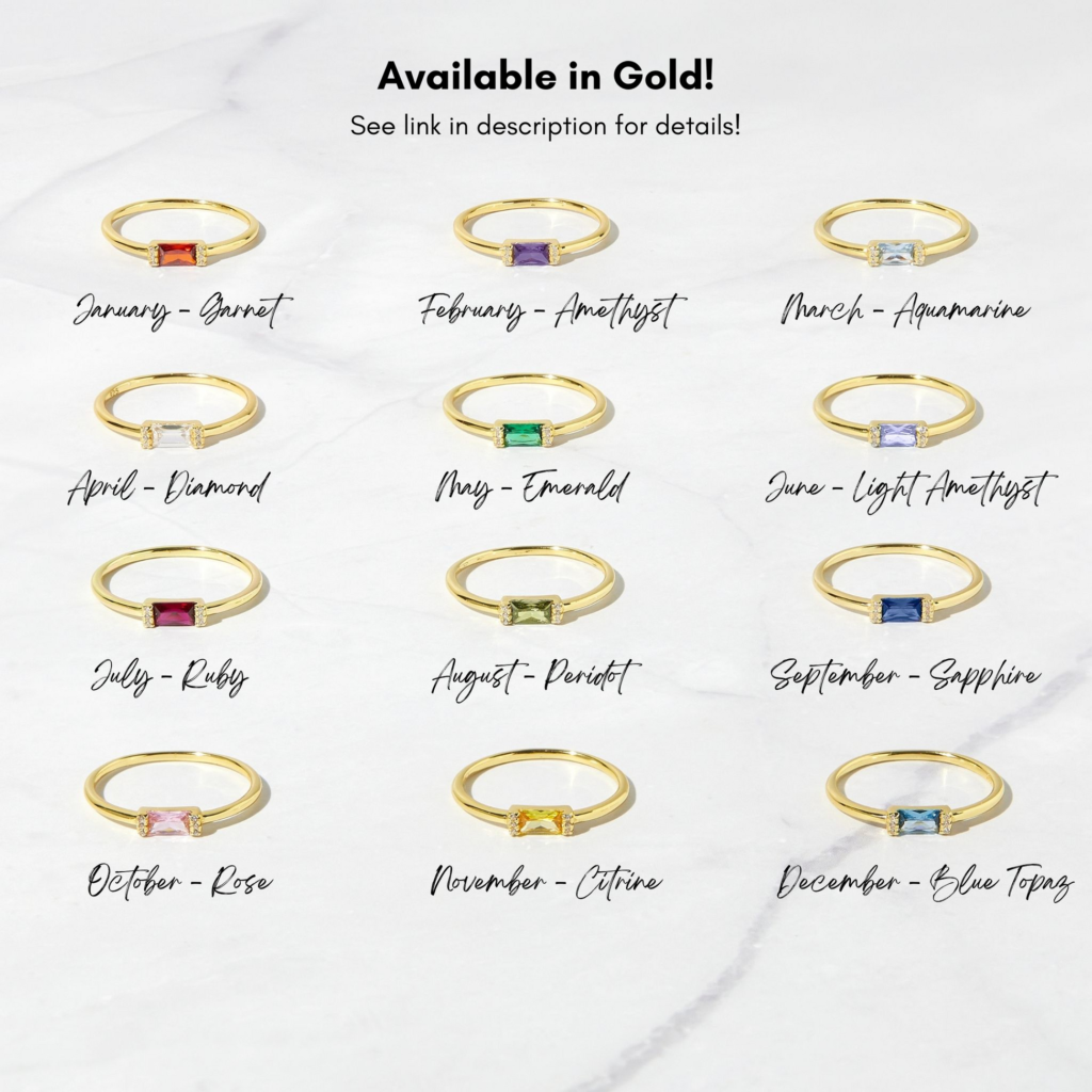 Swarish Jewels Vintage Baguette Silver Ring | Dainty Bezel Cz Crystal Pinky Ring | Stylish Everyday Minimalist Jewelry for Women Ladies